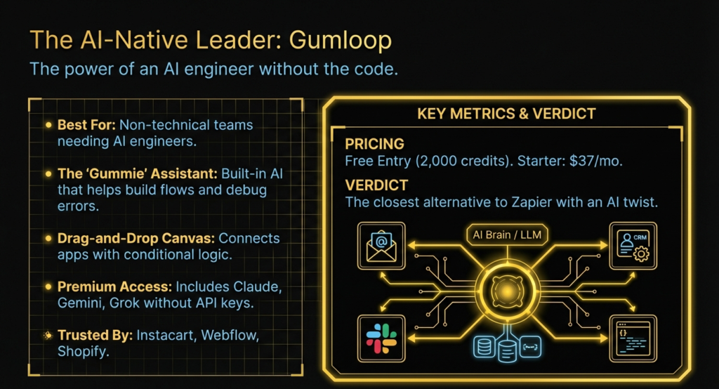 | Gumloop | ✔ | AI workflows | ✘ | ✔ |