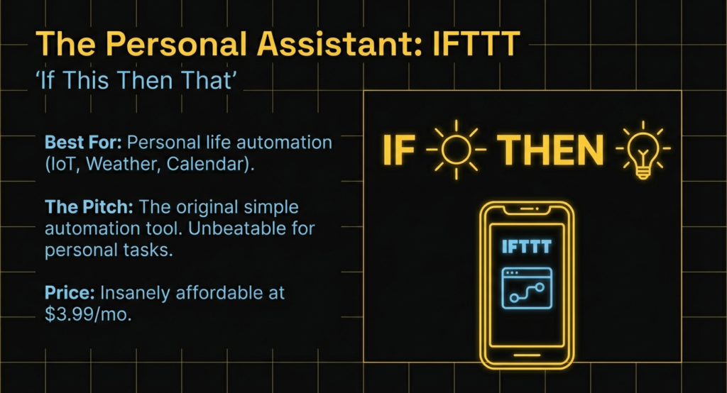 | IFTTT | Yes | $2.99/mo | Simple applets |