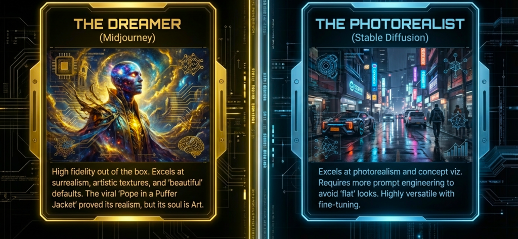 This is backed by how each platform was built: Midjourney is about creative immediacy, Stable Diffusion is about deep customization.